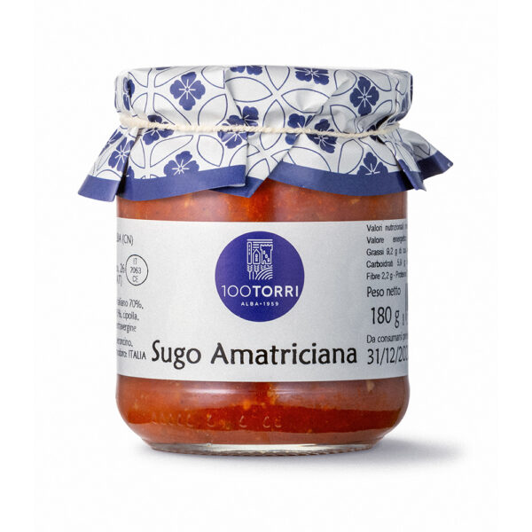 Salsa per il condimento della pasta con pomodori e guanciale di maiale italiani. Gli ingredienti sono stati selezionati attentamente per garantire un prodotto fresco e pronto all’uso, per un primo veloce e appetitoso.
